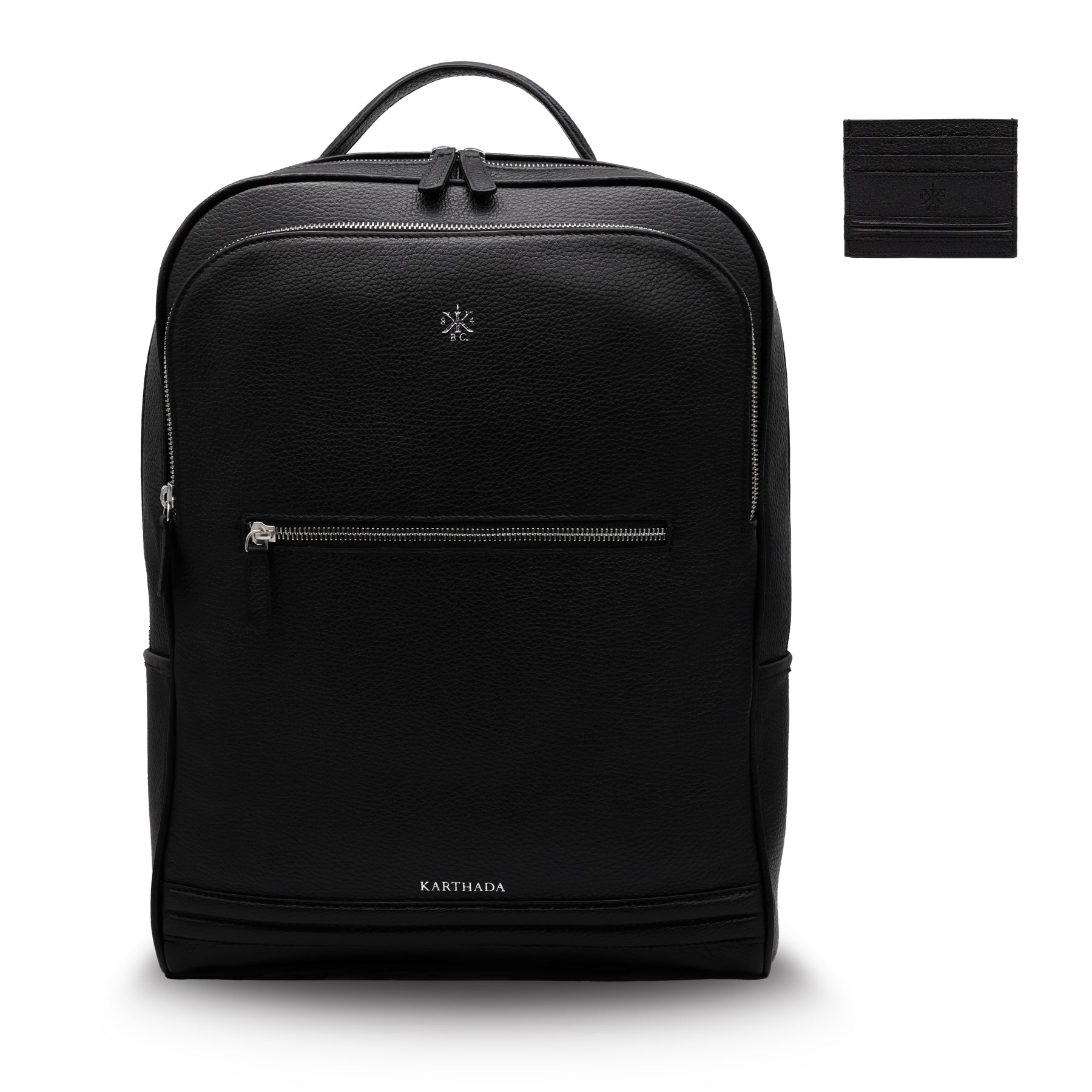 MAGONID Backpack & GISCO Mini Wallet – Black Full Grain Leather